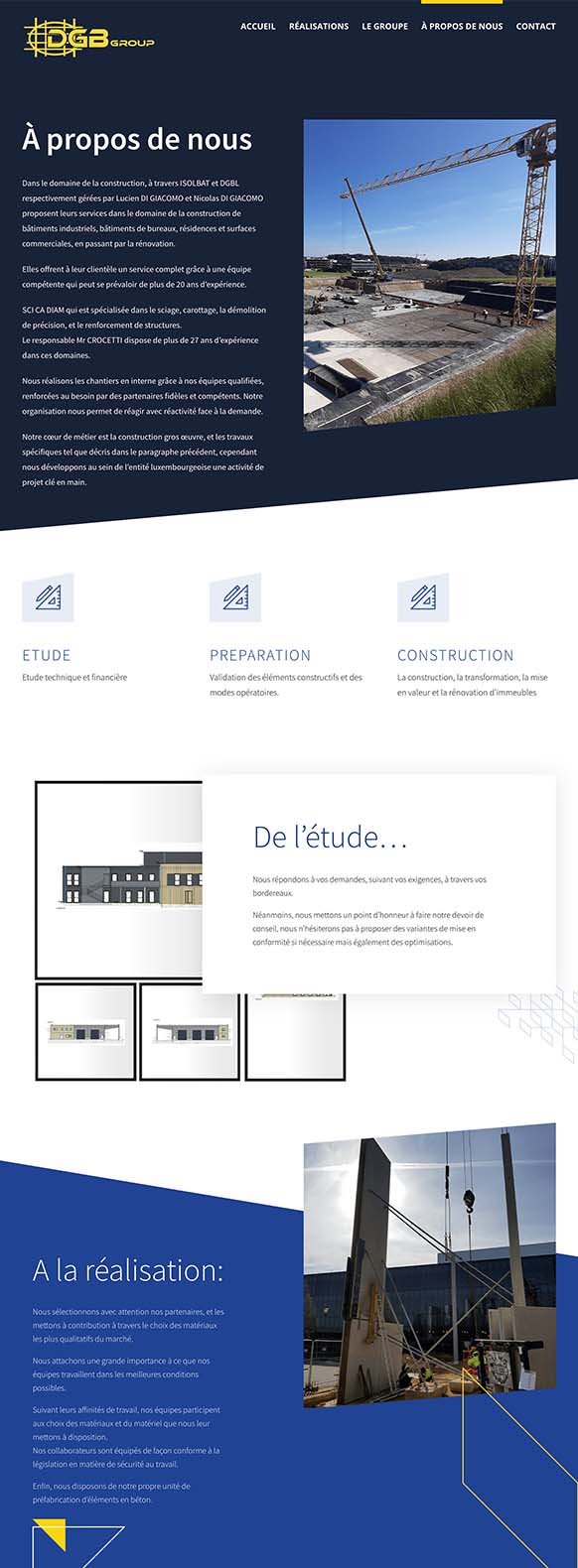 Auf Basis des Firmenlogos haben wir eine DGB Corporate Identity gestaltet, die sich in einen maßgeschneiderten Website widerspiegelt. Die Kernwerte sowie der Auftrag und die Vision werden durch zahlreiche Fotos von den Baustellen der Gruppe veranschaulicht. Die lange Liste der abgeschlossenen Projekte zeugt vom Know-how und Engagement, die DGB-Gruppe ist ein zuverlässiger Partner für jedes Bauprojekt.